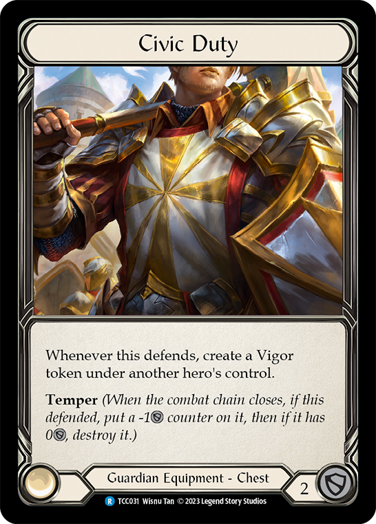 Temper (When the combat chain closes, if this defended, put a -1{d} counter on it, then if it has 0{d}, destroy it.)