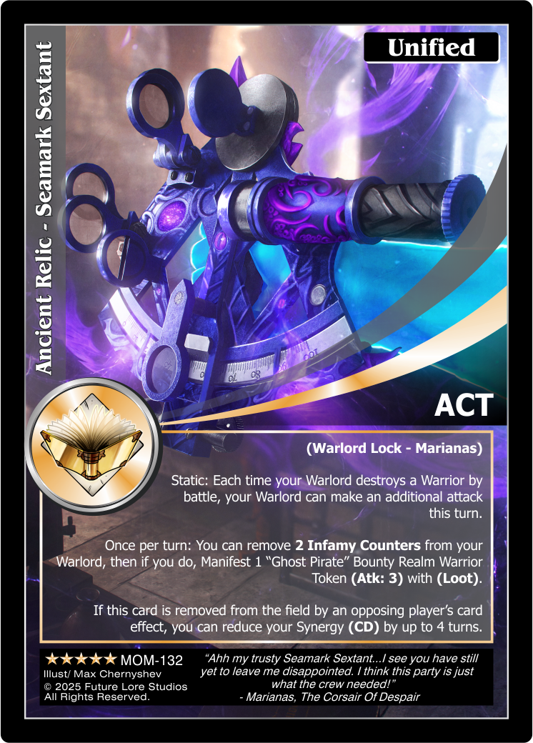 Once per turn: You can remove 2 Infamy Counters from your Warlord, then if you do, Manifest 1 “Ghost Pirate” Bounty Realm Warrior Token (Atk: 3) with (Loot).