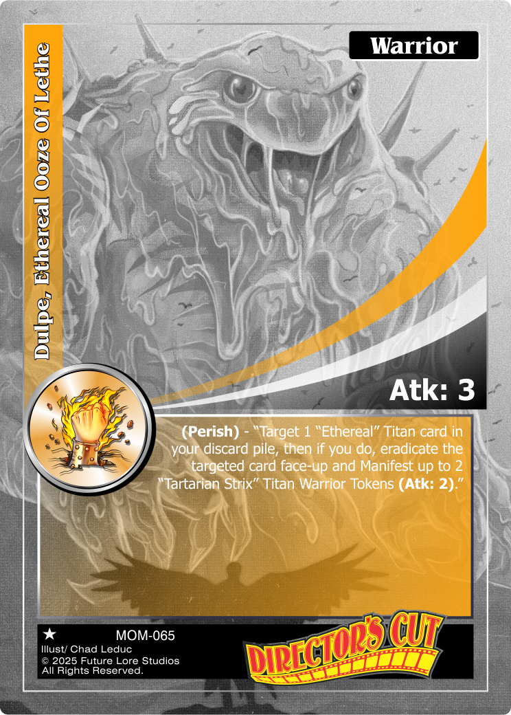 (Perish) – “Target 1 ‘Ethereal’ Titan card in your discard pile, then if you do, eradicate the targeted card face-up and Manifest up to 2 ‘Tartarian Strix’ Titan Warrior Tokens (Atk: 2).”