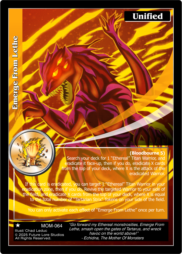 “Go forward my Ethereal monstrosities, Emerge From Lethe, smash open the gates of Tartarus, and wreck havoc on the world above!”