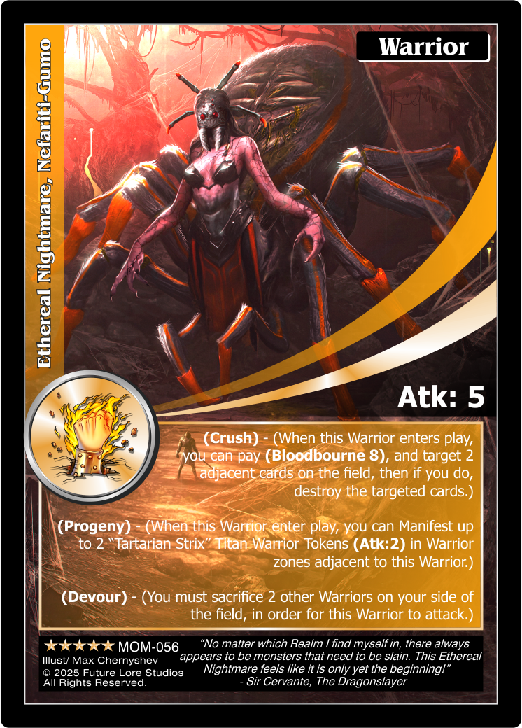 (Progeny) – (When this Warrior enters play, you can Manifest up to 2 “Tartarian Strix” Titan Warrior Tokens (Atk: 2) in Warrior zones adjacent to this Warrior.)