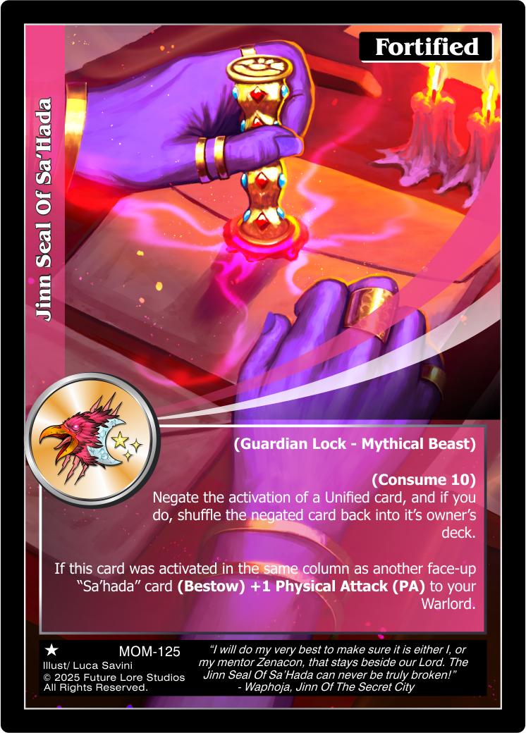“I will do my very best to make sure it is either I, or my mentor Zenacon, that stays beside our Lord. The Jinn Seal Of Sa’Hada can never be truly broken!”