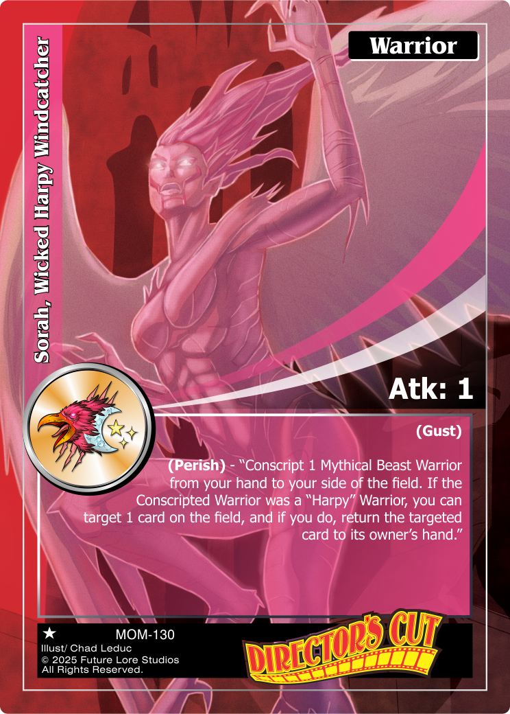 (Perish) – “Conscript 1 Mythical Beast Warrior from your hand to your side of the field. If the Conscripted Warrior was a ‘Harpy’ Warrior, you can target 1 card on the field, and if you do, return the targeted card to its owner’s hand.”