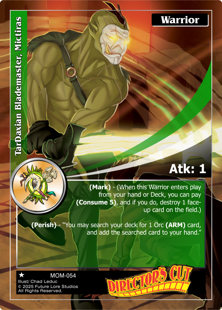 (Mark) – (When this Warrior enters play from your hand or Deck, you can pay (Consume 5), and if you do, destroy 1 face-up card on the field.)