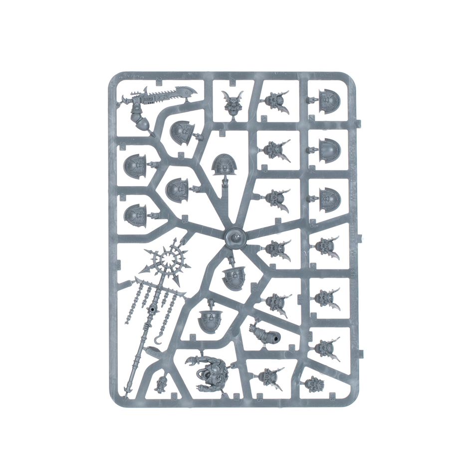 This set comprises 196 plastic components and is supplied with 10x Citadel 32mm Round Bases. This set also includes 1x Chaos Space Marines Transfer Sheet containing 364 high-quality waterslide transfers for you to further decorate your models.
