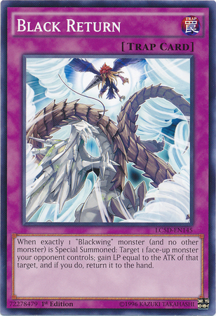 When exactly 1 "Blackwing" monster (and no other monster) is Special Summoned: Target 1 face-up monster your opponent controls; gain LP equal to the ATK of that target, and if you do, return it to the hand.