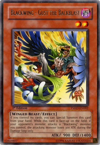 If you control no cards, you can Special Summon this card from your hand. While this card is face-up on the field, if your opponent's monster attacks a "Blackwing" monster you control, the attacking monster loses 300 ATK during the Damage Step only.