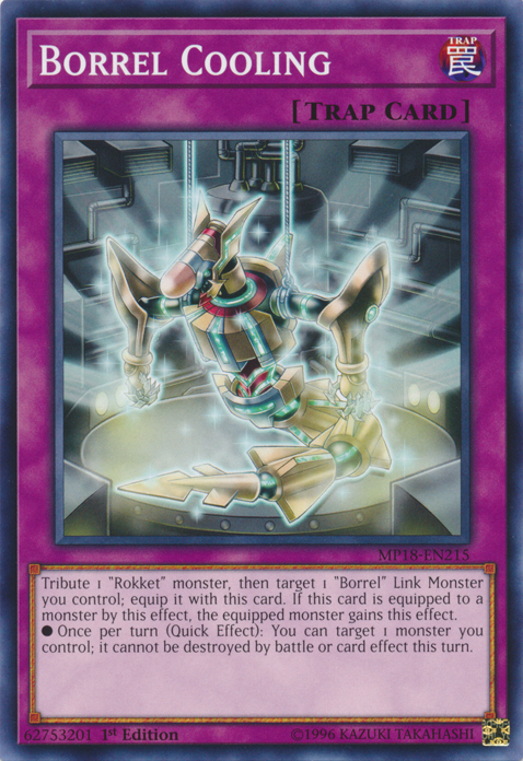 Tribute 1 "Rokket" monster, then target 1 "Borrel" Link Monster you control; equip it with this card. If this card is equipped to a monster by this effect, the equipped monster gains this effect. • Once per turn (Quick Effect): You can target 1 monster you control; it cannot be destroyed by battle or card effects this turn.