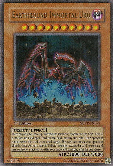 There can only be 1 face-up "Earthbound Immortal" monster on the field. If there is no face-up Field Spell Card on the field destroy this card. Your opponent cannot select this card as an attack target. This card can attack your opponent directly. Once per turn, you can Tribute 1 monster, except this card, to select and take control of 1 face-up monster your opponent controls, until the End Phase.
