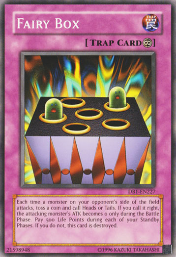 Each time a monster on your opponent's side of the field attacks, toss a coin and call Heads or Tails. If you call it right, the attacking monster's ATK becomes 0 only during the Battle Phase. Pay 500 Life Points during each of your Standby Phases. If you cannot, this card is destroyed.