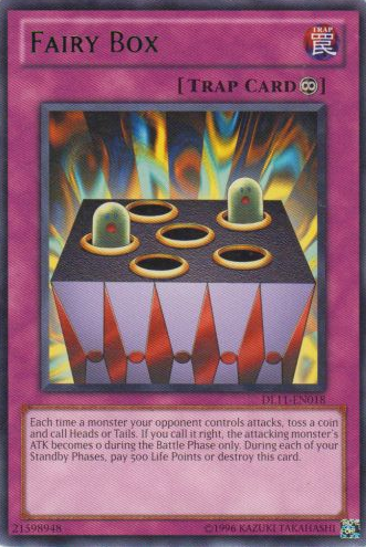 Each time a monster your opponent controls attacks, toss a coin and call Heads or Tails. If you call it right, the attacking monster's ATK becomes 0 during the Battle Phase only. During each of your Standby Phases, pai 500 Life Points or destroy this card.