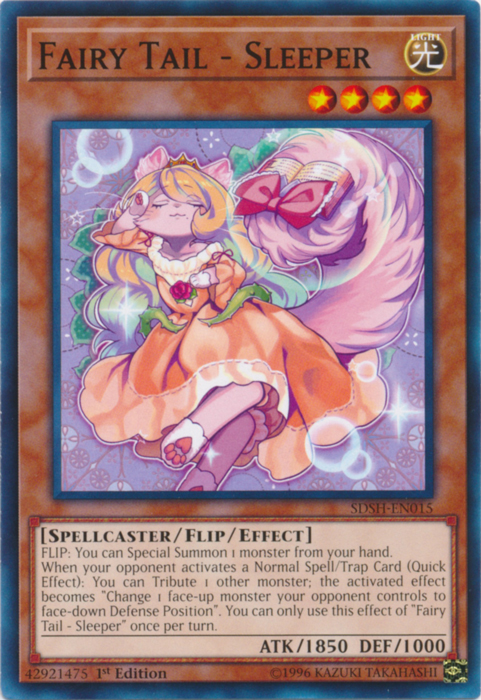 When your opponent activates a Normal Spell/Trap Card (Quick Effect): You can Tribute 1 other monster; the activated effect becomes "Change 1 face-up monster your opponent controls to face-down Defense Position". You can only use this effect of "Fairy Tail - Sleeper" once per turn.