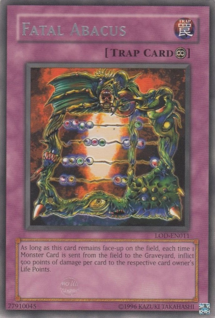 As long as this card remains face-up on the field, each time 1 Monster Card is sent from the field to the Graveyard, inflict 500 points of Direct Damage per card to the respective card owners' Life Points.