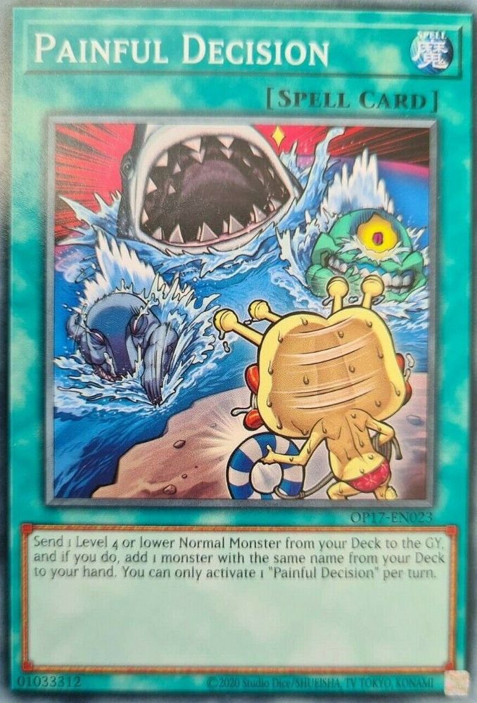 Send 1 Level 4 or lower Normal Monster from your Deck to the GY, and if you do, add 1 card with the same name as that card from your Deck to your hand. You can only activate 1 "Painful Decision" per turn.