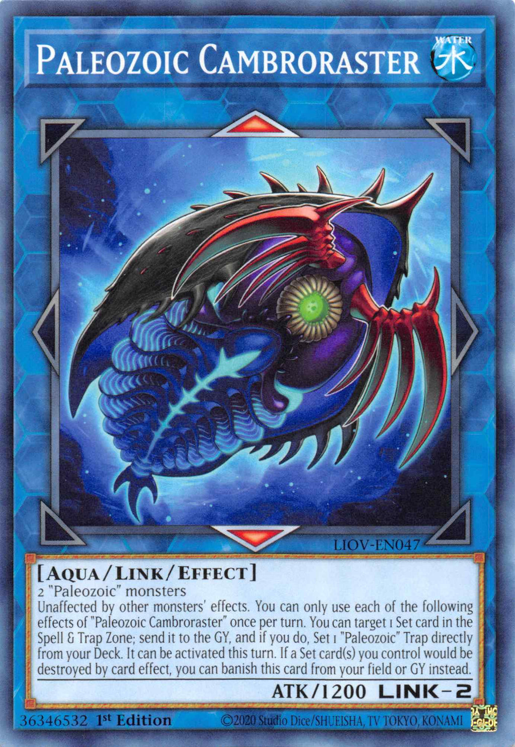 Unaffected by other monsters' effects. You can only use each of the following effects of "Paleozoic Cambroraster" once per turn. You can target 1 Set card in the Spell & Trap Zone; send it to the GY, and if you do, Set 1 "Paleozoic" Trap directly from your Deck. It can be activated this turn. If a Set card(s) you control would be destroyed by card effect, you can banish this card from your field or GY instead.