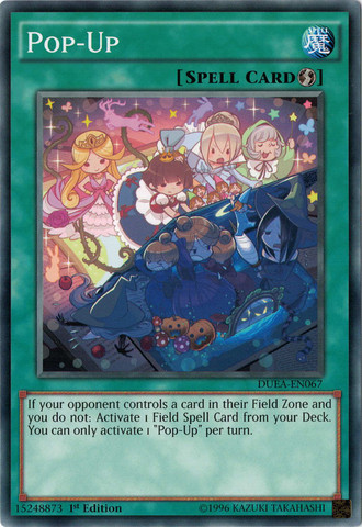 If your opponent controls a card in their Field Zone and you do not: Activate 1 Field Spell Card from your Deck. You can only activate 1 "Pop-Up" per turn.