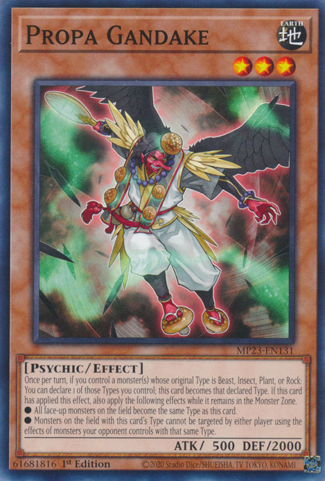 Once per turn, if you control a monster(s) whose original Type is Beast, Insect, Plant, or Rock: You can declare 1 of those Types you control; this card becomes that declared Type. If this card has applied this effect, also apply the following effects while it remains in the Monster Zone.
