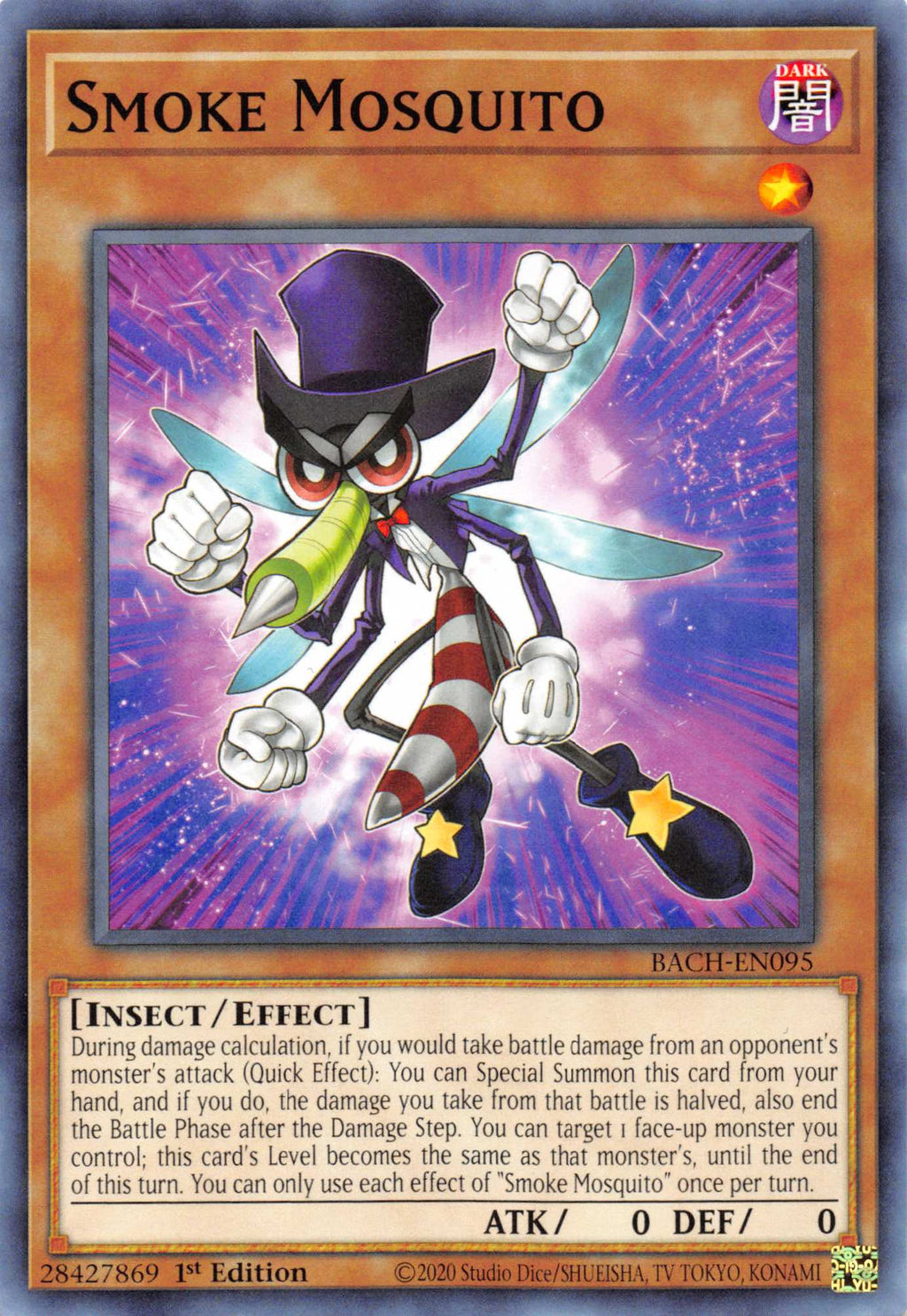 During damage calculation, if you would take battle damage from an opponent's monster's attack (Quick Effect): You can Special Summon this card from your hand, and if you do, the damage you take from that battle is halved, also end the Battle Phase after the Damage Step. You can target 1 face-up monster you control; this card's Level becomes the same as that monster's, until the end of this turn. You can only use each effect of "Smoke Mosquito" once per turn.