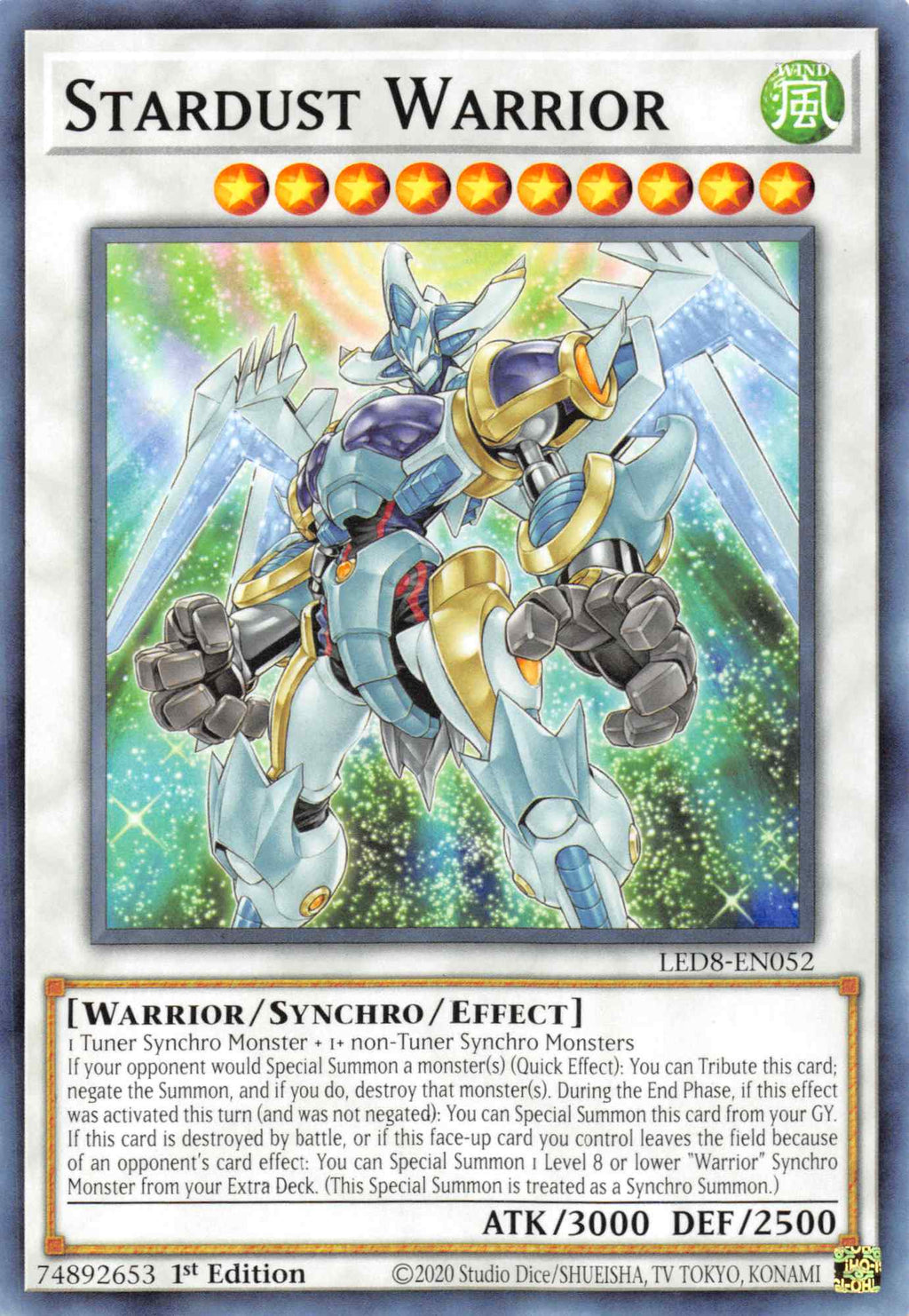 During either player's turn, if your opponent would Special Summon a monster(s): You can Tribute this card; negate the Summon, and if you do, destroy that monster(s). During the End Phase, if this effect was activated this turn (and was not negated): You can Special Summon this card from your GY. If this card is destroyed by battle, or if this face-up card you control leaves the field because of an opponent's card effect: You can Special Summon 1 Level 8 or lower "Warrior" Synchro Monster from your Extra Deck. (This Special Summon is treated as a Synchro Summon.)