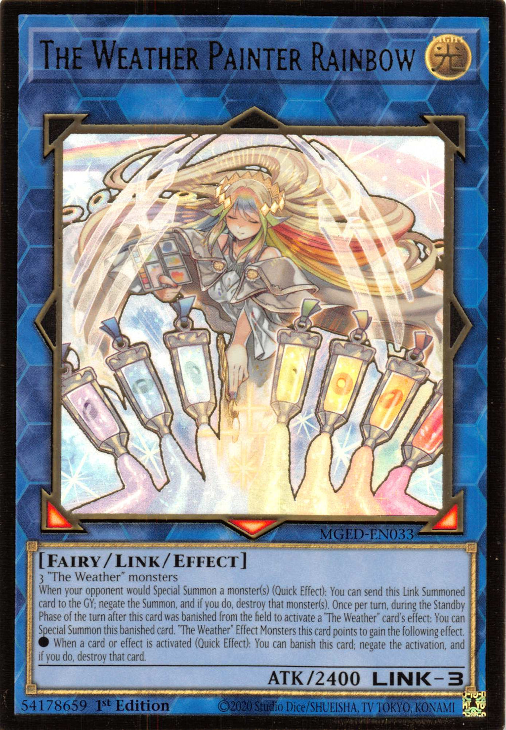When your opponent would Special Summon a monster(s) (Quick Effect): You can send this Link Summoned card to the GY; negate the Summon, and if you do, destroy that monster(s). Once per turn, during the Standby Phase of the turn after this card was banished from the field to activate a "The Weather" card's effect: You can Special Summon this banished card. "The Weather" Effect Monsters this card points to gain the following effect.