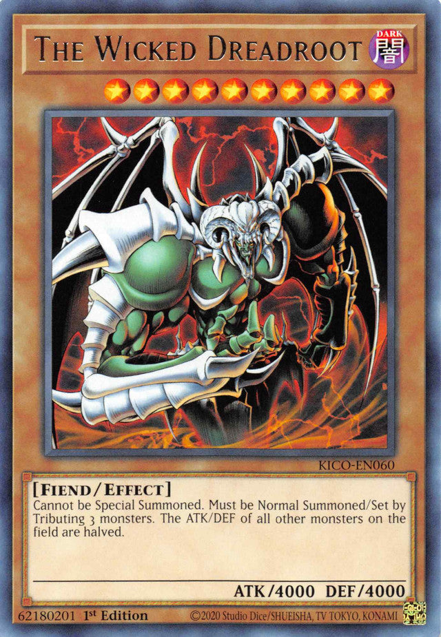 Cannot be Special Summoned. Must be Normal Summoned/Set by Tributing 3 monsters. The ATK/DEF of all other monsters on the field are halved.