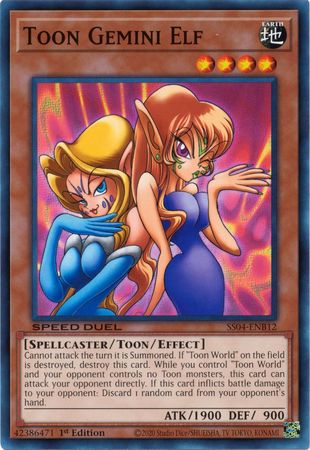 Cannot attack the turn it is Summoned. If "Toon World" on the field is destroyed, destroy this card. While you control "Toon World" and your opponent controls no Toon monsters, this card can attack your opponent directly. If this card inflicts battle damage to your opponent: Discard 1 random card from your opponent's hand.
