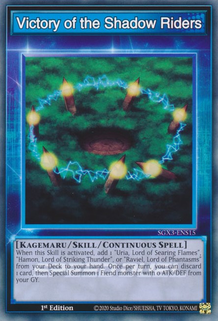 When this Skill is activated, add 1 "Uria, Lord of Searing Flames", "Hamon, Lord of Striking Thunder", or "Raviel, Lord of Phantasms" from your Deck to your hand. Once per turn, you can discard 1 card, then Special Summon 1 Fiend monster with 0 ATK/DEF from your GY.
