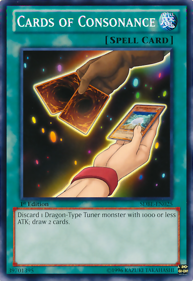 Discard 1 Dragon-Type Tuner monster with 1000 or less ATK; draw 2 cards.
