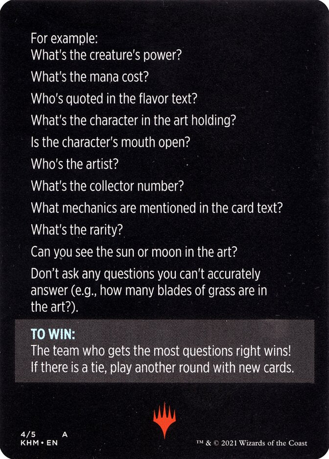 Take turns memorizing Magic cards and trying to stump your opponent with questions!